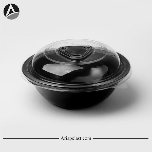 - ظرف سالاد با درِ شفاف و سس کاپ مثلثی